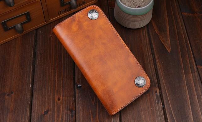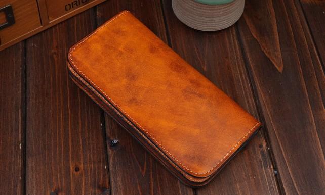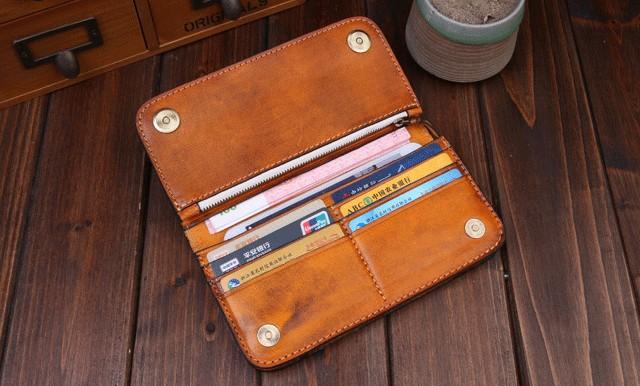 Design: Handmade Leather Mens Clutch Wallet Cool Leather Wallet Long Phone Wallets for Men