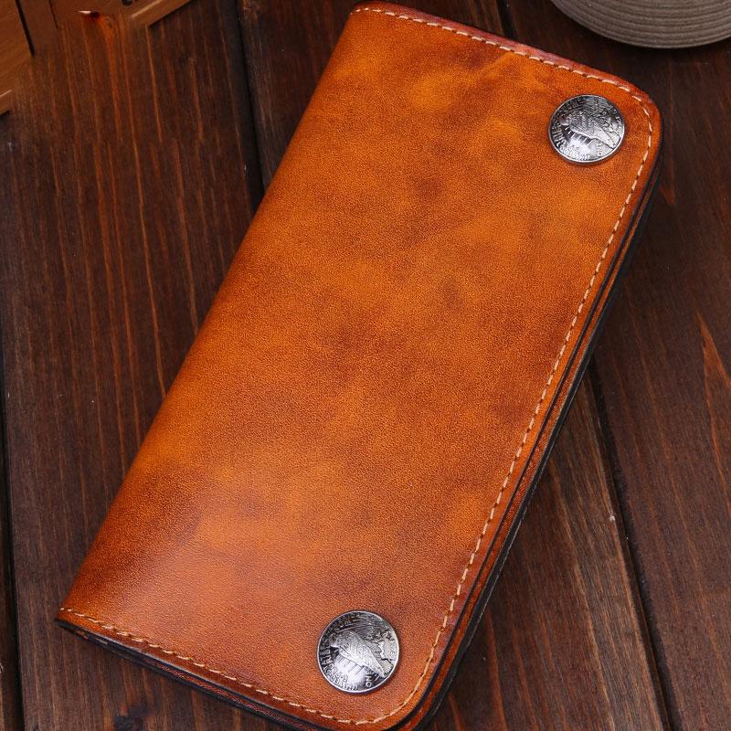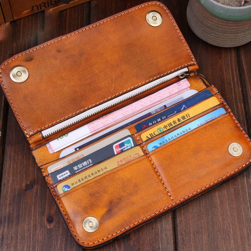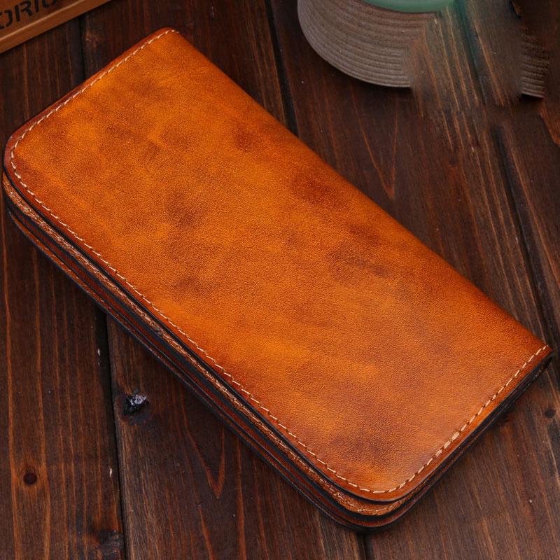 Style: Handmade Leather Mens Clutch Wallet Cool Leather Wallet Long Phone Wallets for Men