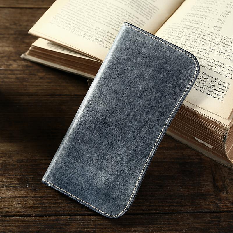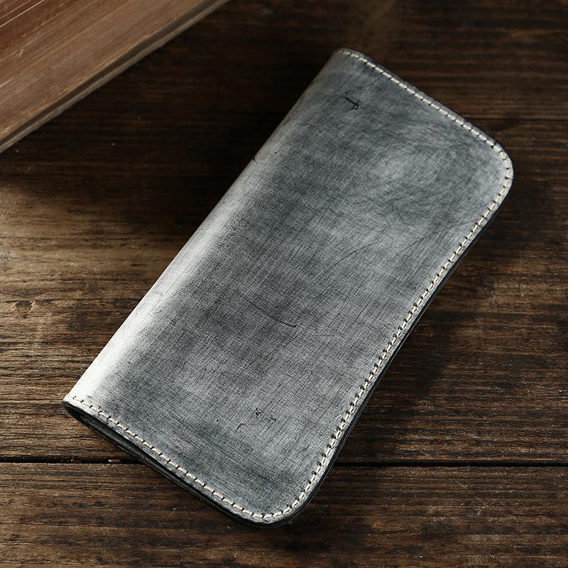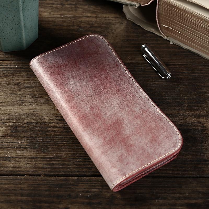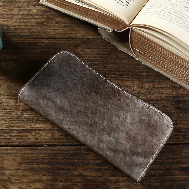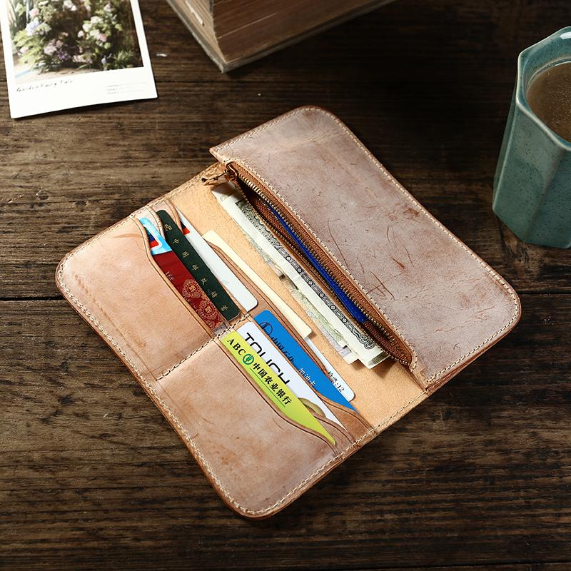 Style: Handmade Mens Simple Leather Long Wallet Bifold Long Wallet Brown Card Wallet For Men