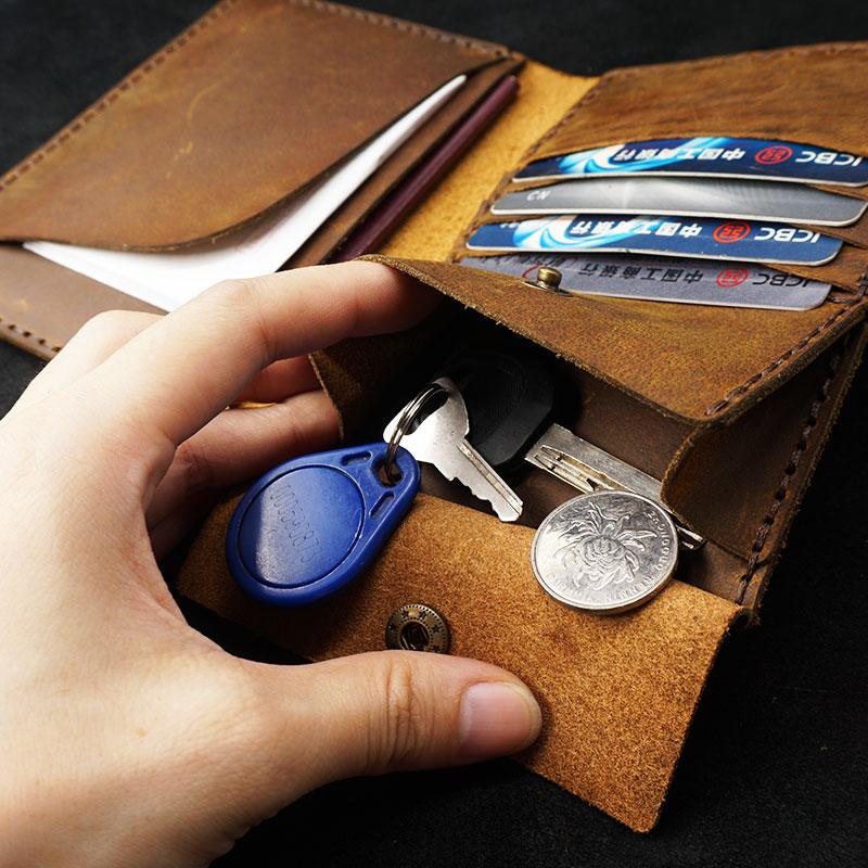 Design: Handmade Slim Leather Mens Bifold Travel Wallets Passport Wallet Long Wallet for Men