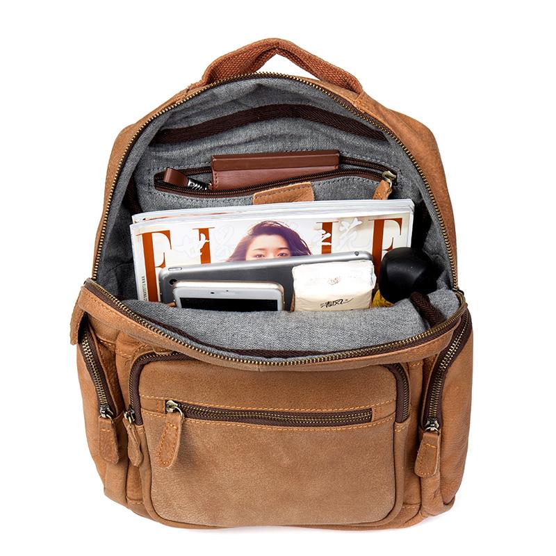 Style: Khaki Casual Leather Mens 13 inches Travel Backpacks Computer Backpack for Men