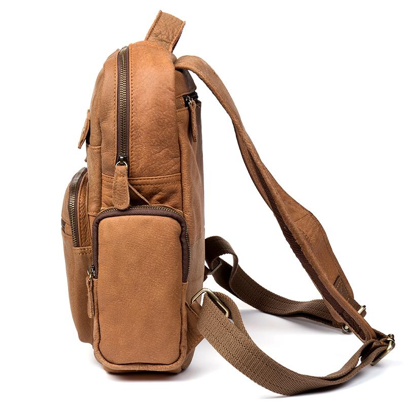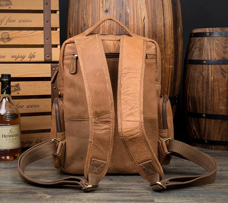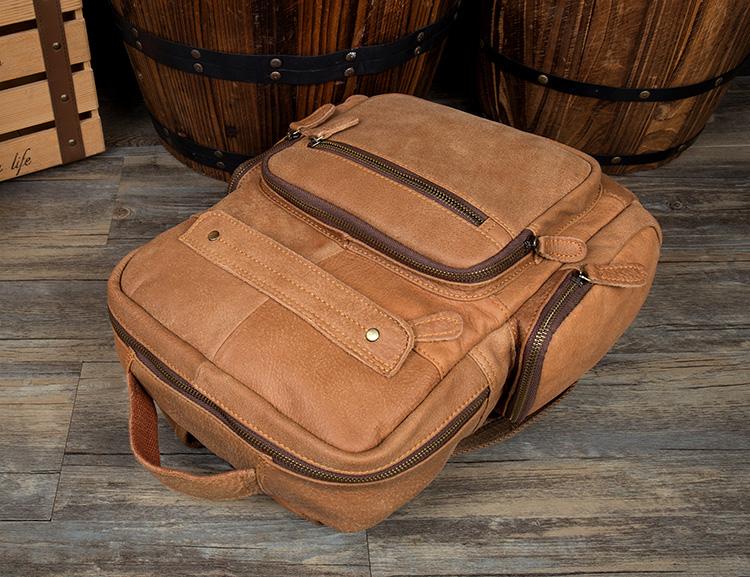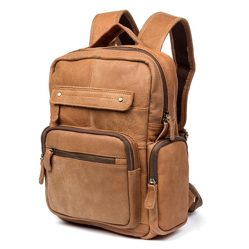 Design: Khaki Casual Leather Mens 13 inches Travel Backpacks Computer Backpack for Men