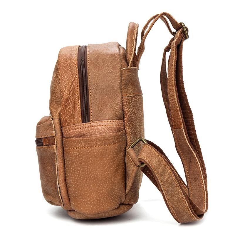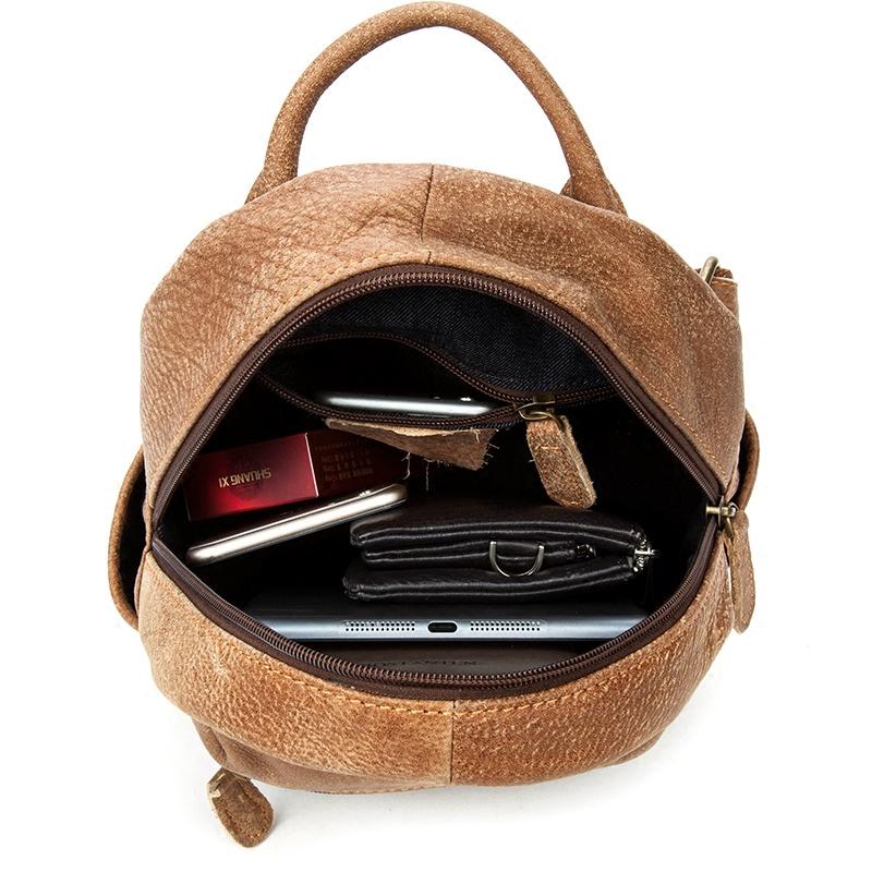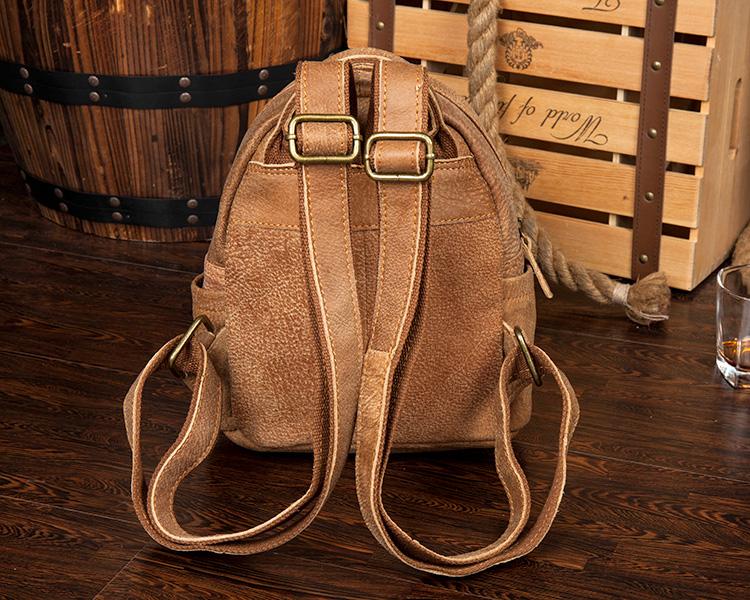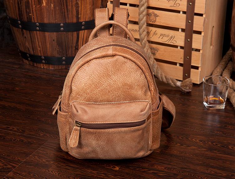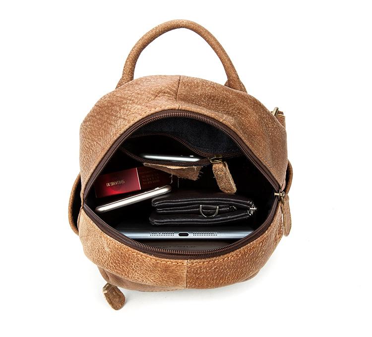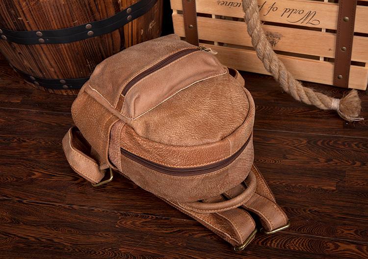 Style: Khaki Fashion Mens Leather 10-inch Computer Backpacks Cool Travel Backpacks School Backpack for men