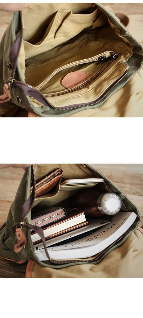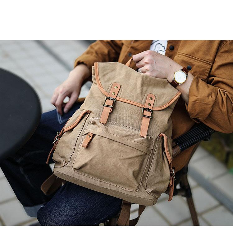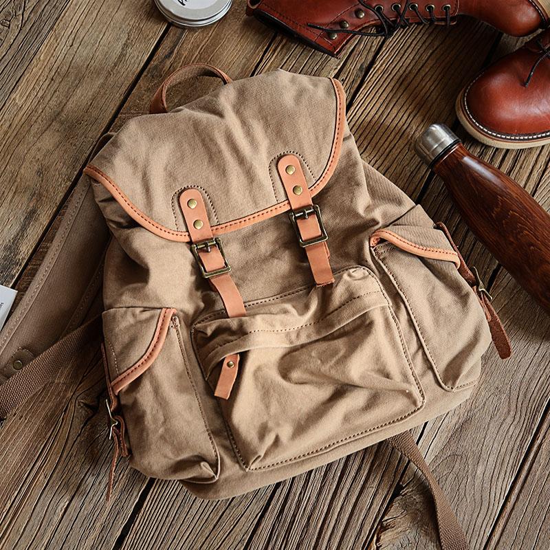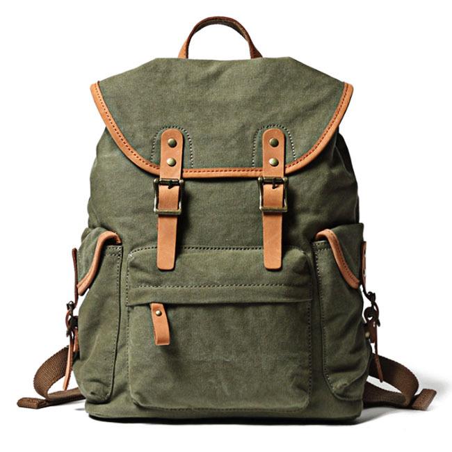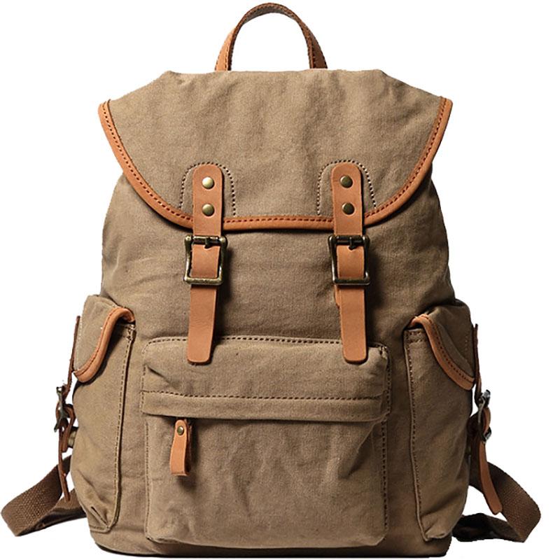 Style: Khaki Retro Canvas Mens Womens Travel Backpack College Backpack Green Canvas School Backpack For Men