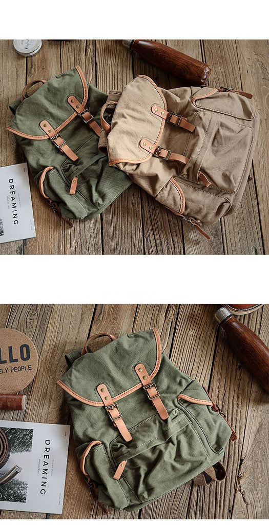 Design: Khaki Retro Canvas Mens Womens Travel Backpack College Backpack Green Canvas School Backpack For Men