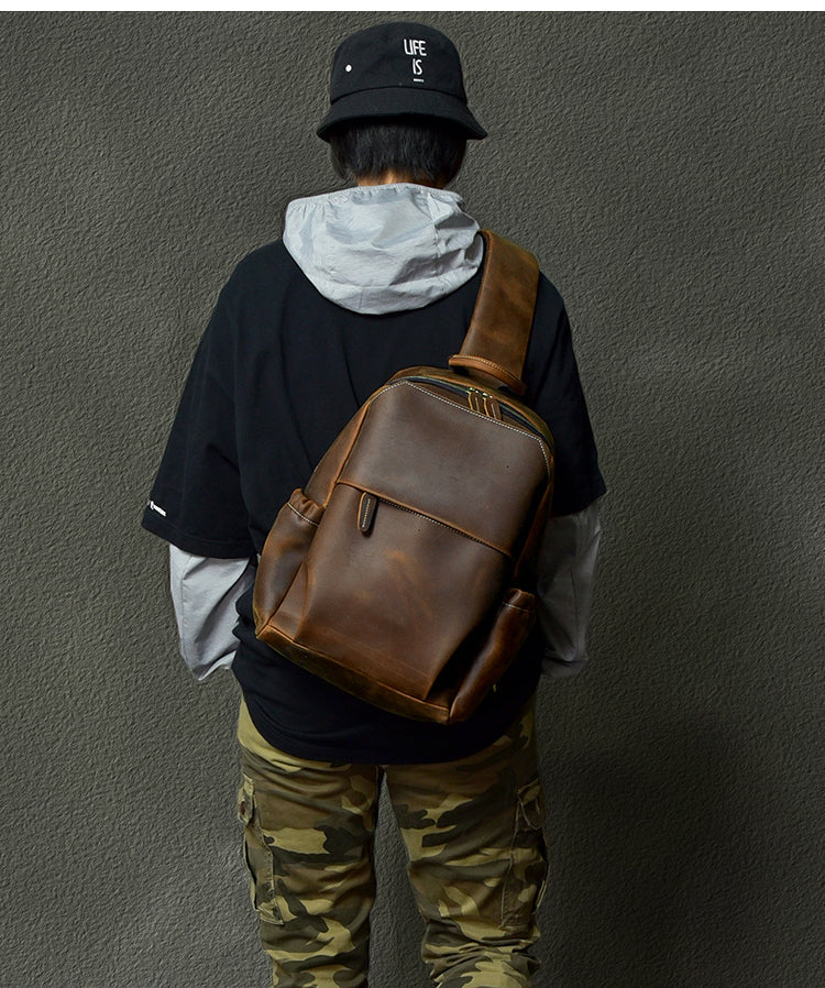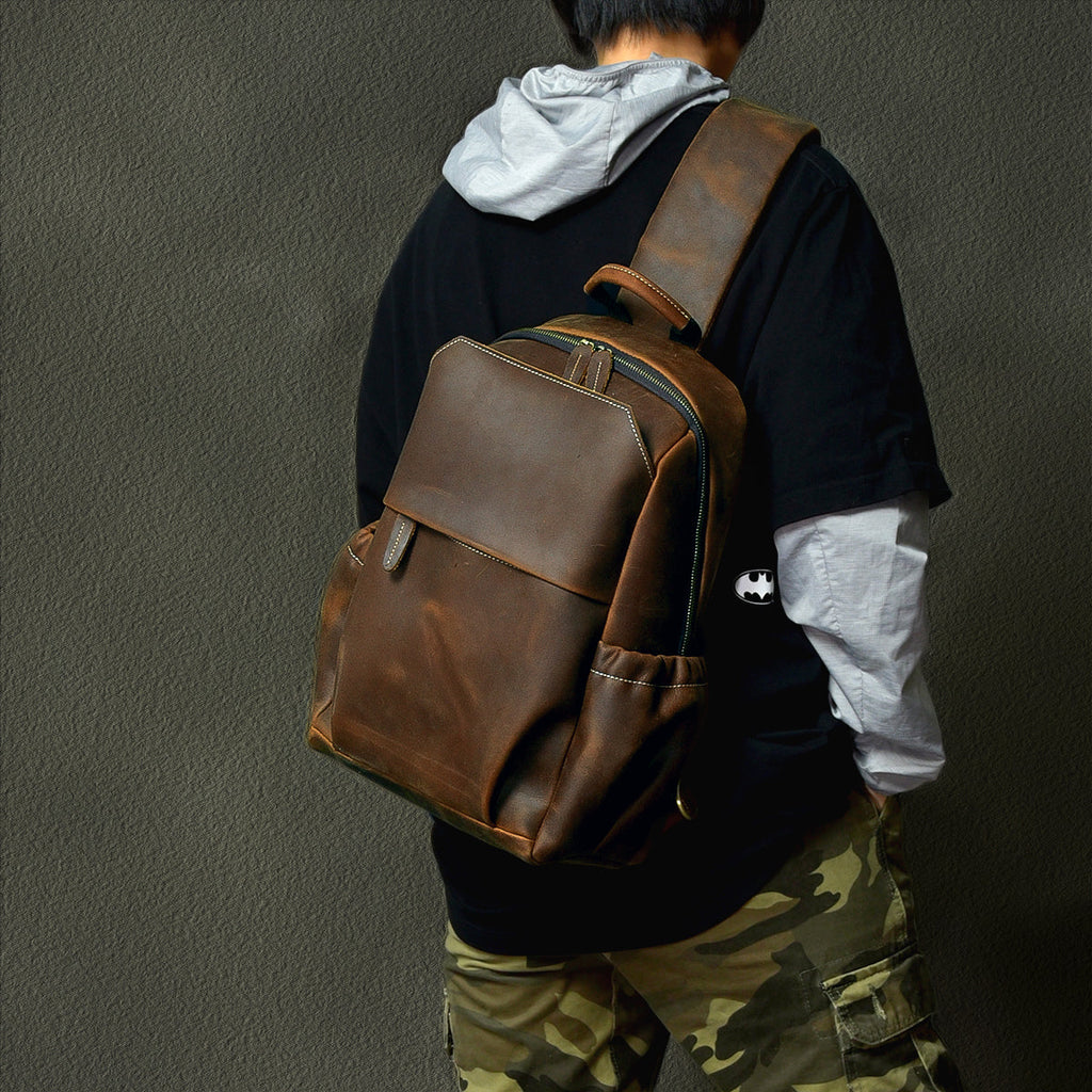 Large Sling Bag For Men Large Leather Mens Sling Bag Big Sling Backpack For Men