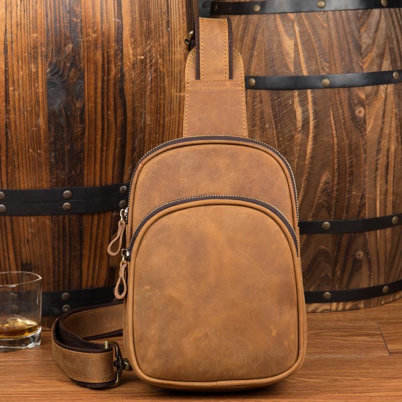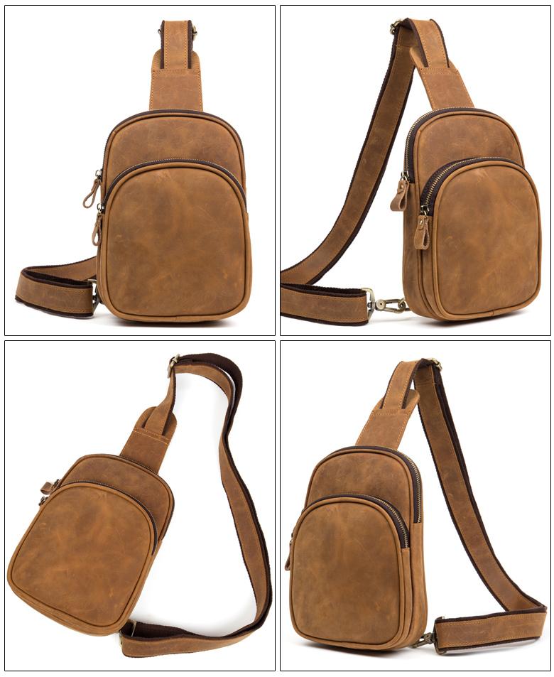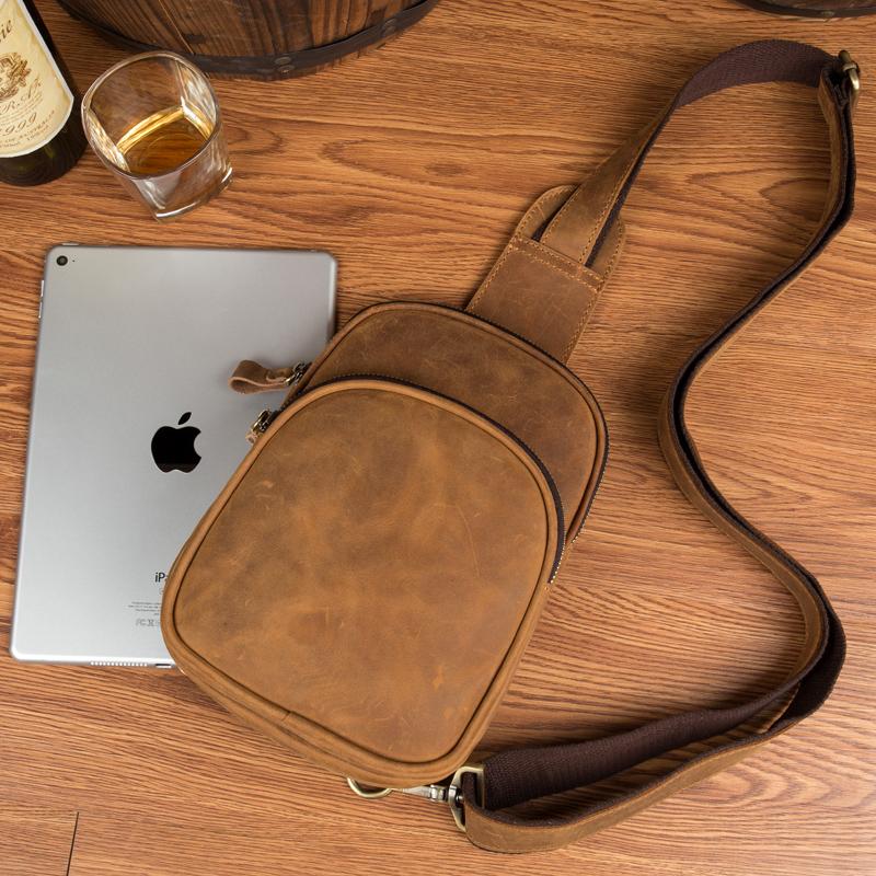 Design: Leather Mens Cool Sling Bag Crossbody Bag Chest Bag for men