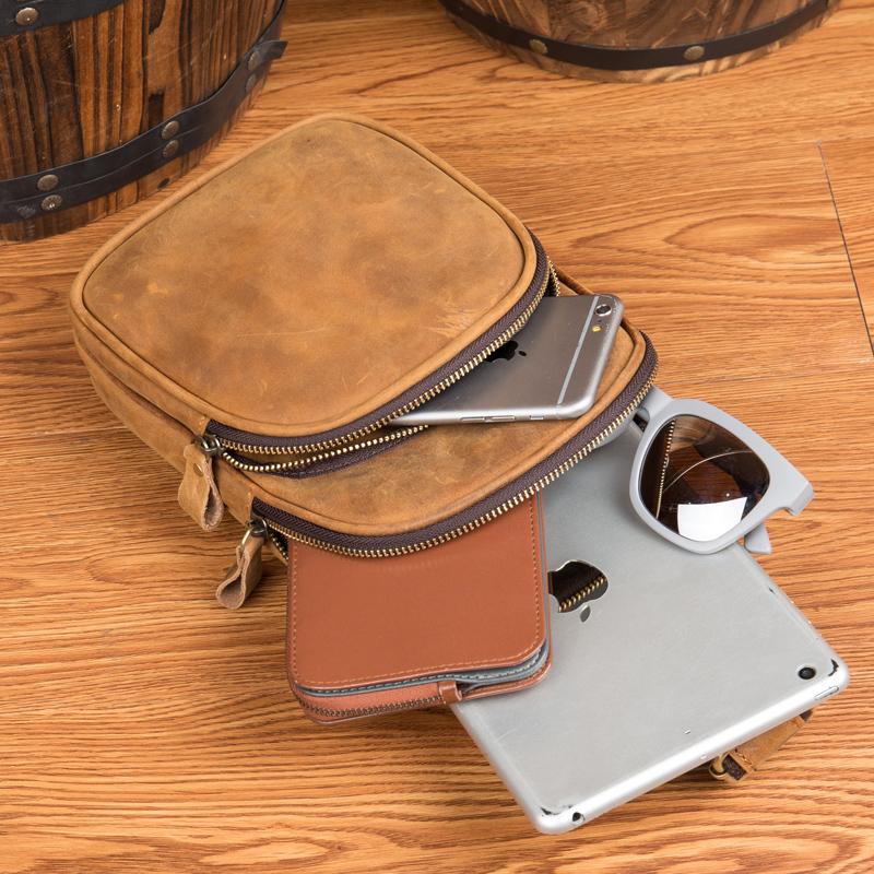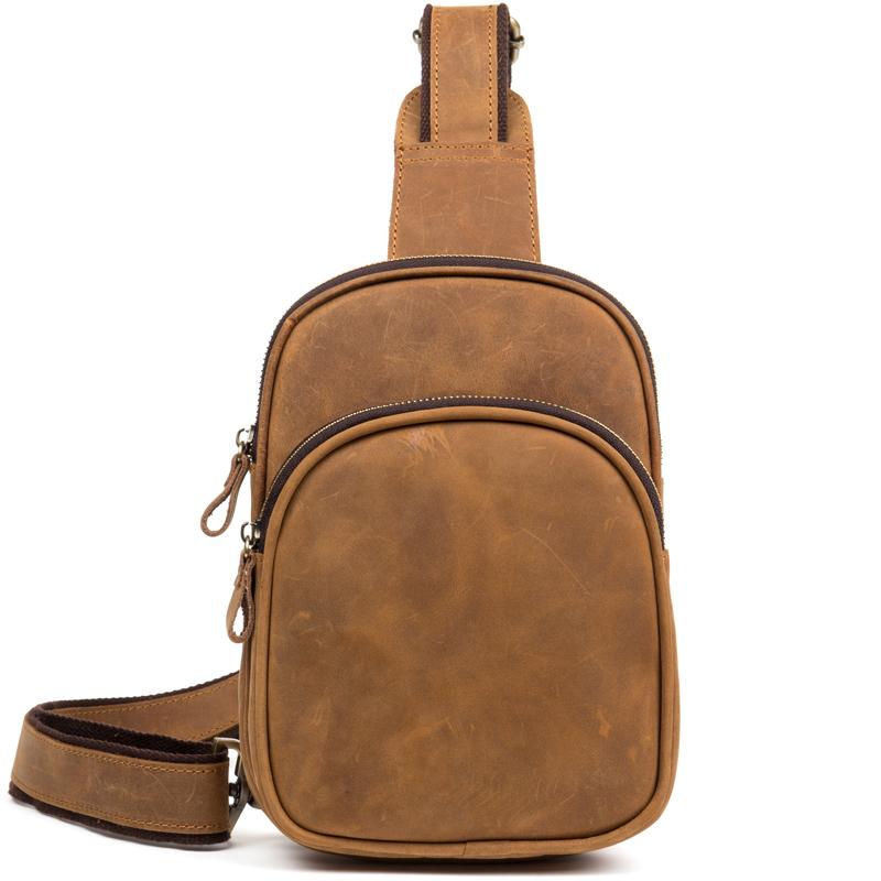 Style: Leather Mens Cool Sling Bag Crossbody Bag Chest Bag for men