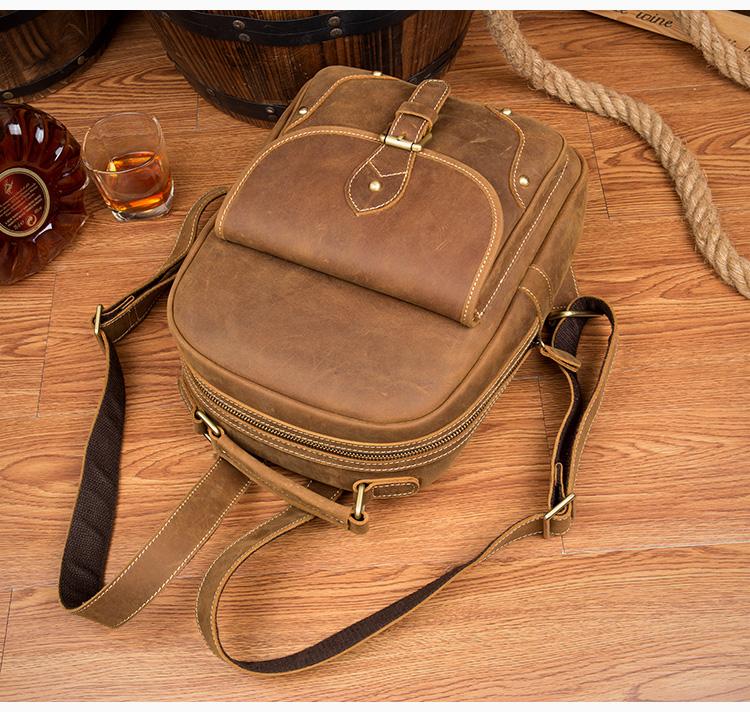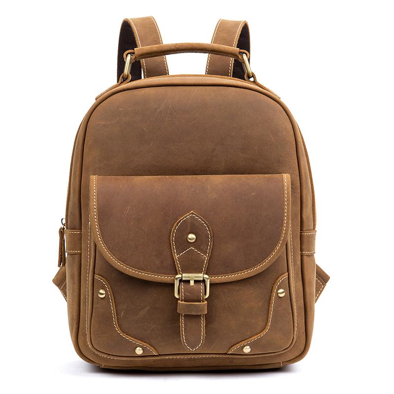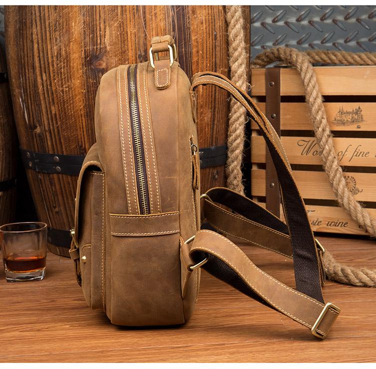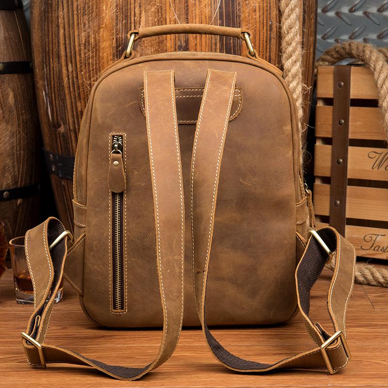Design: Light Brown Fashion Mens Leather 12-inch Computer Backpacks Cool Travel Backpacks School Backpack for men