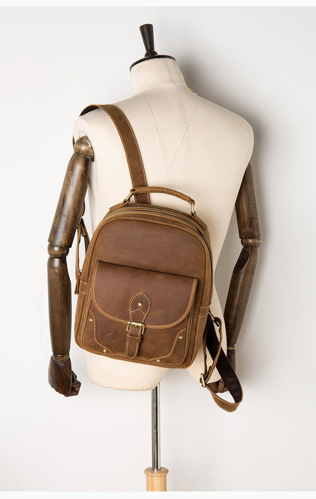 Style: Light Brown Fashion Mens Leather 12-inch Computer Backpacks Cool Travel Backpacks School Backpack for men