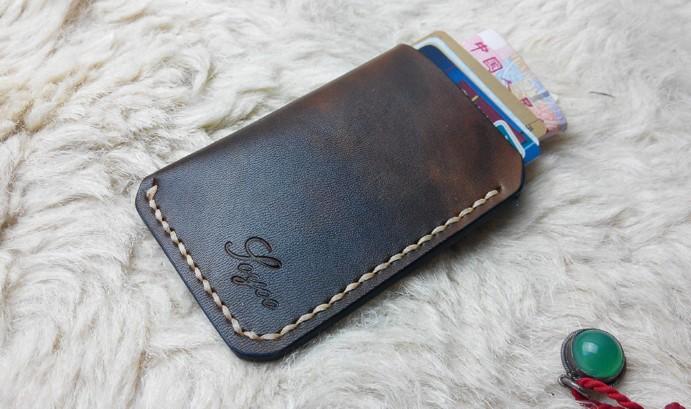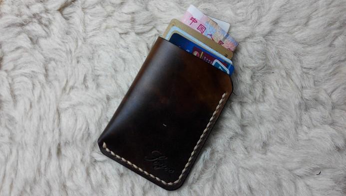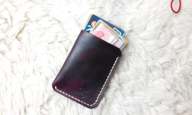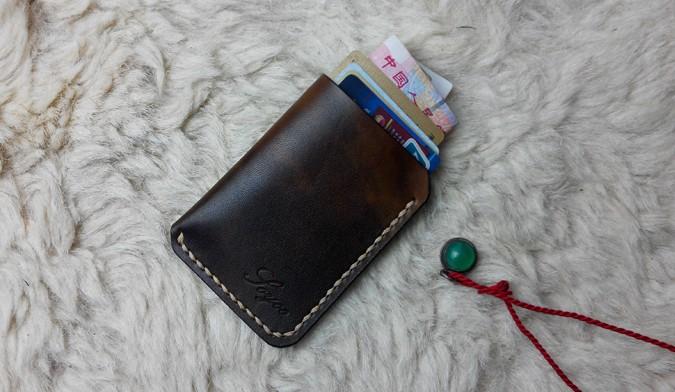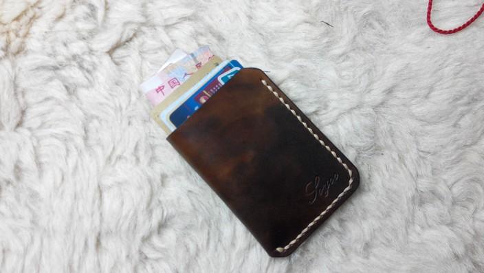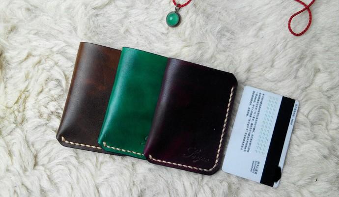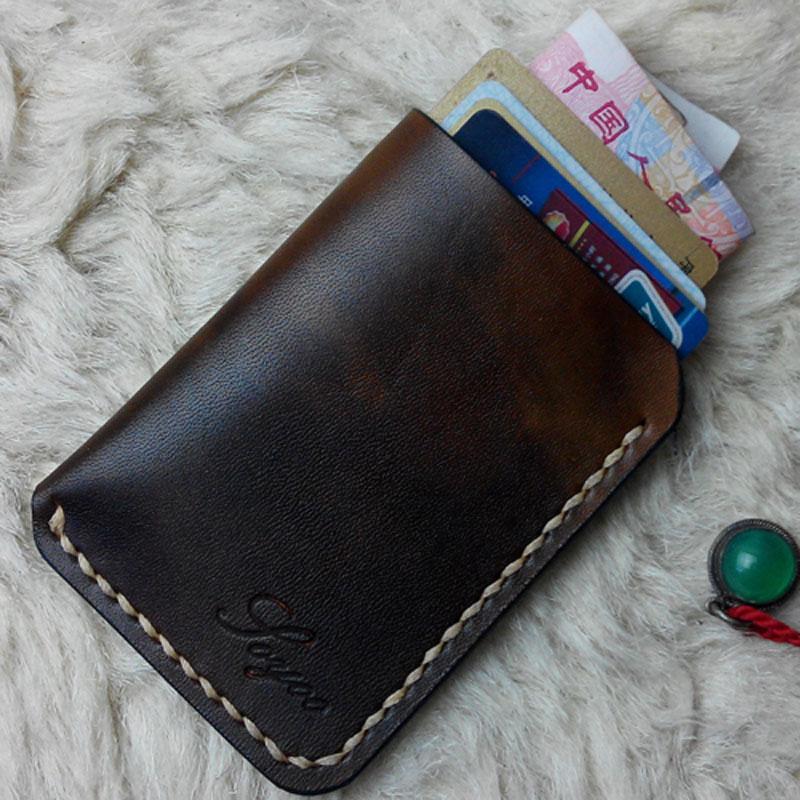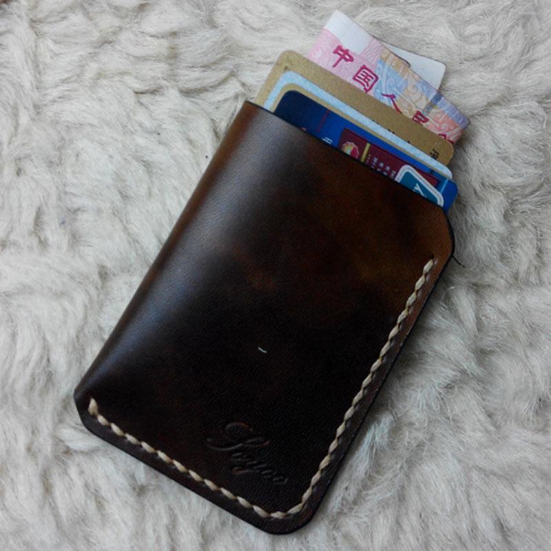 Design: Red Brown Leather Mens Slim Front Pocket Wallets Leather Card Wallet for Men