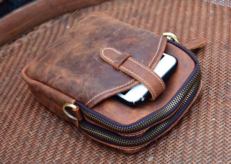 Style: Vintage Brown Leather Men's Cell Phone Holsters Brown Belt Pouch Mini Side Bag For Men
