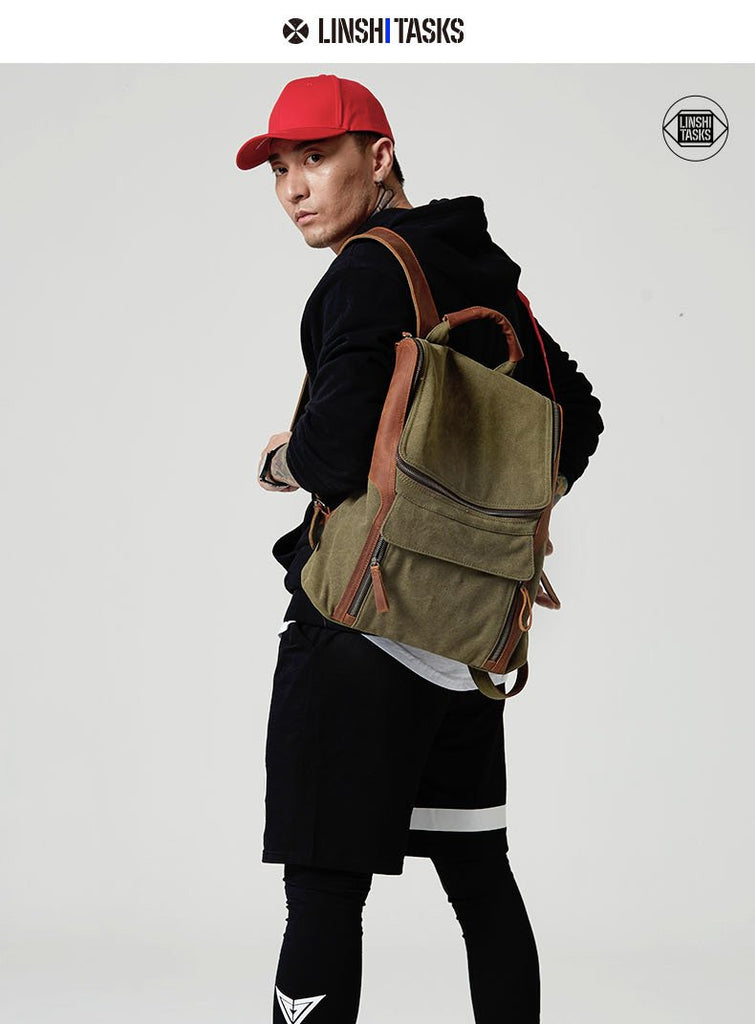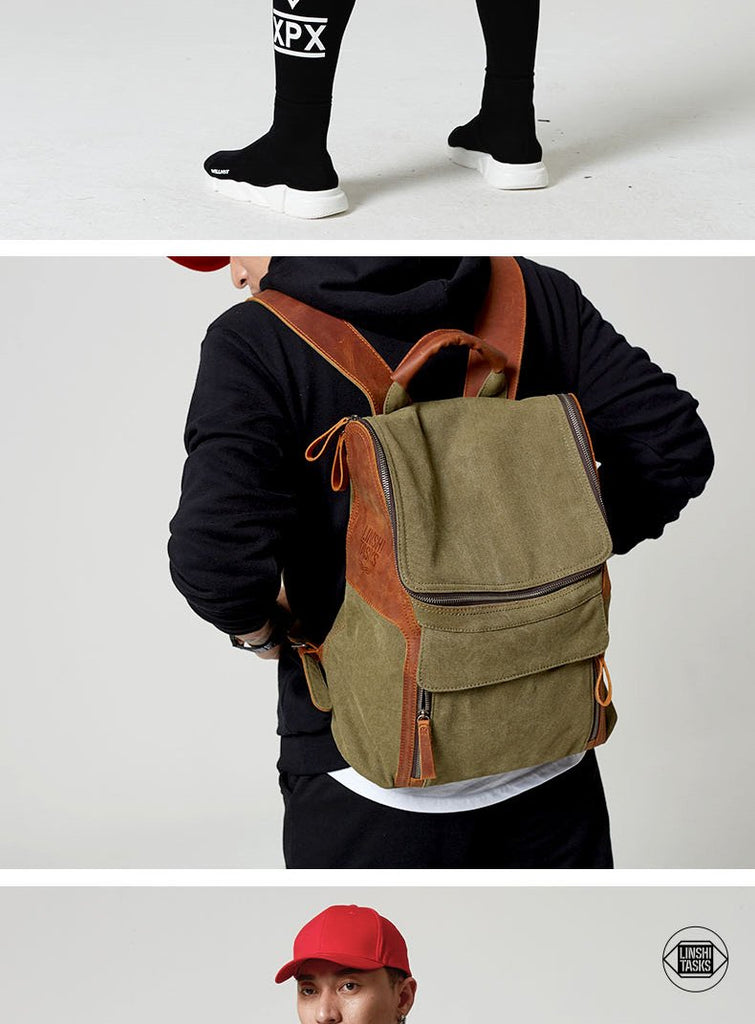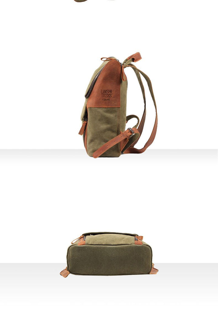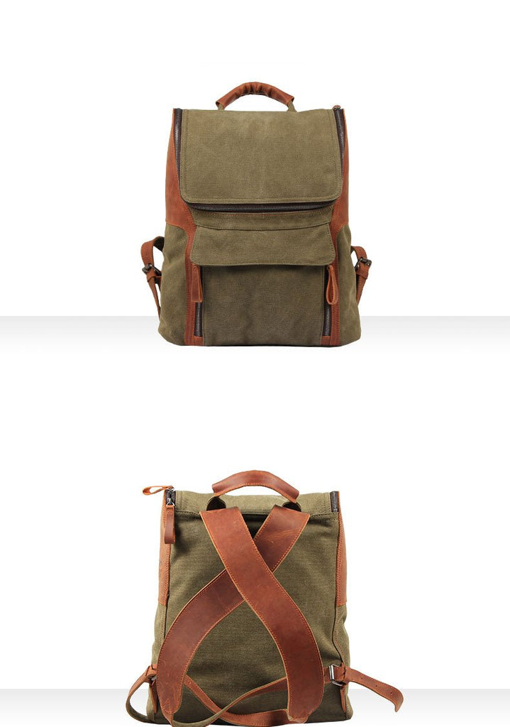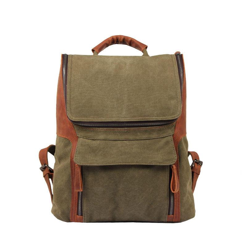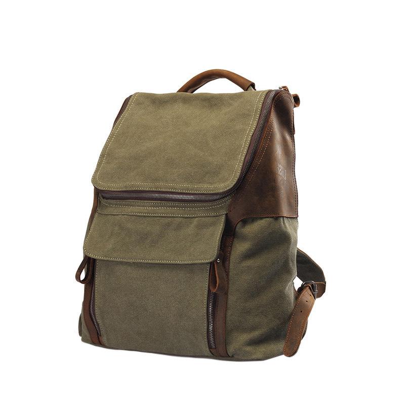 Design: Retro Canvas Leather Mens Large Army Green Backpack School Backpack Canvas Travel Backpack For Men