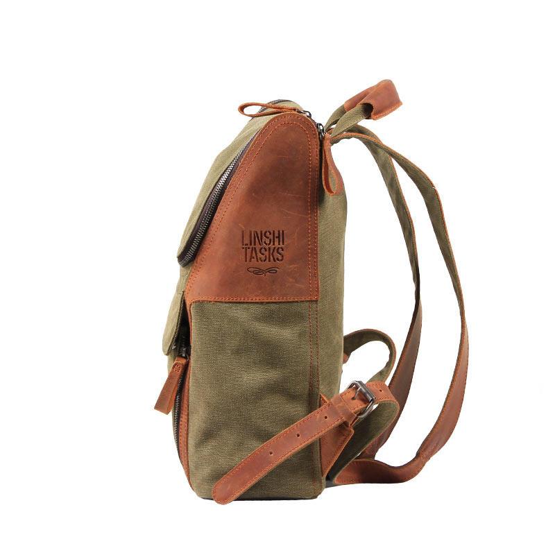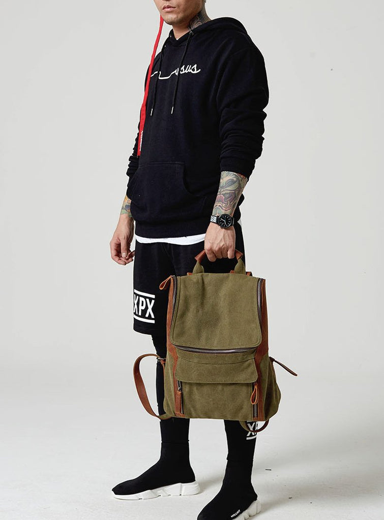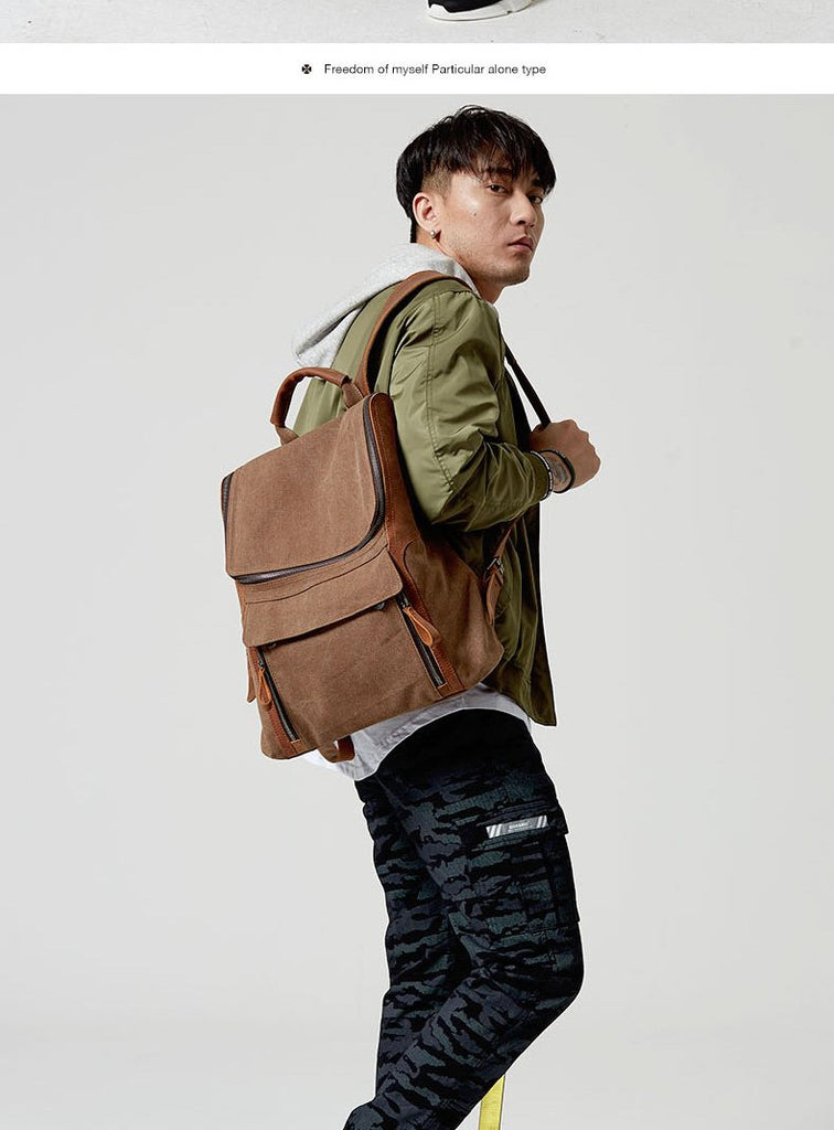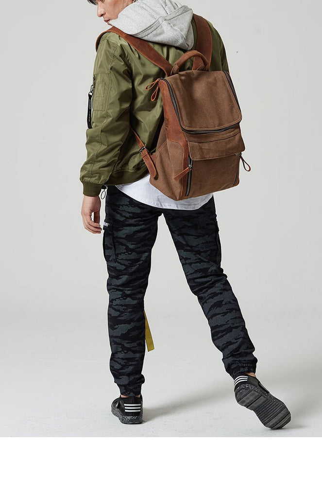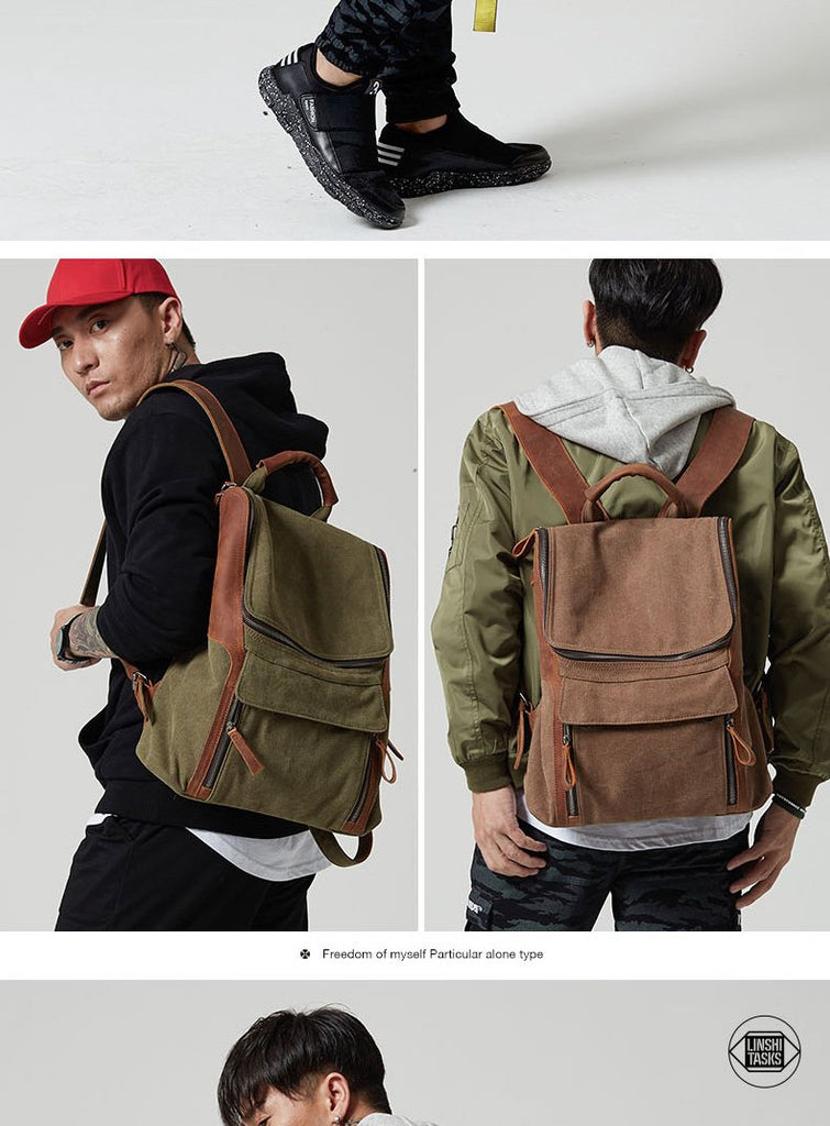 Design: Retro Canvas Leather Mens Large Army Green Backpack School Backpack Canvas Travel Backpack For Men