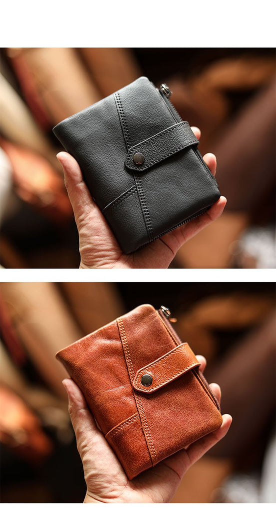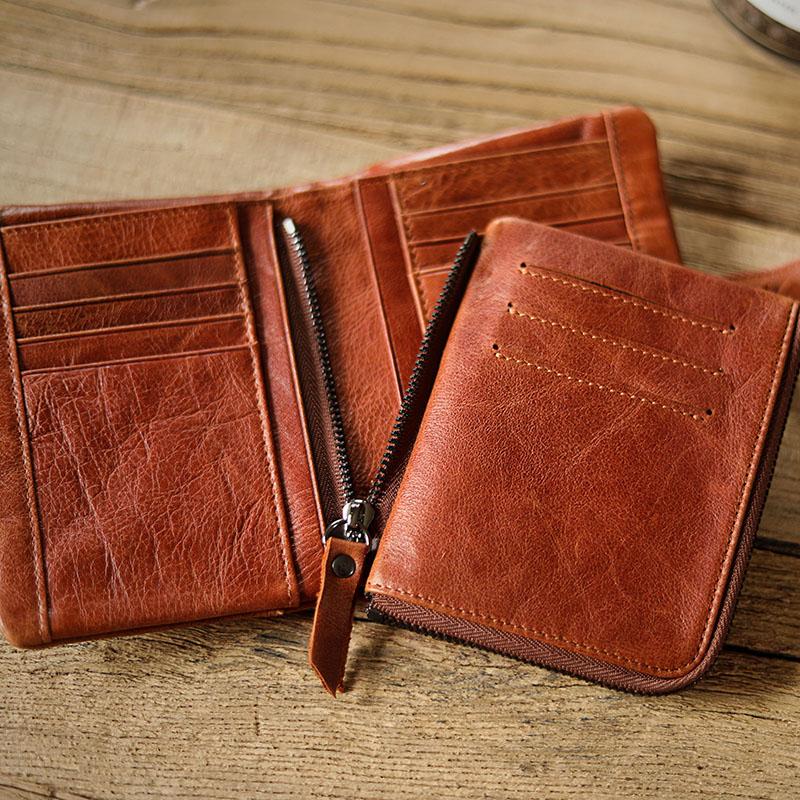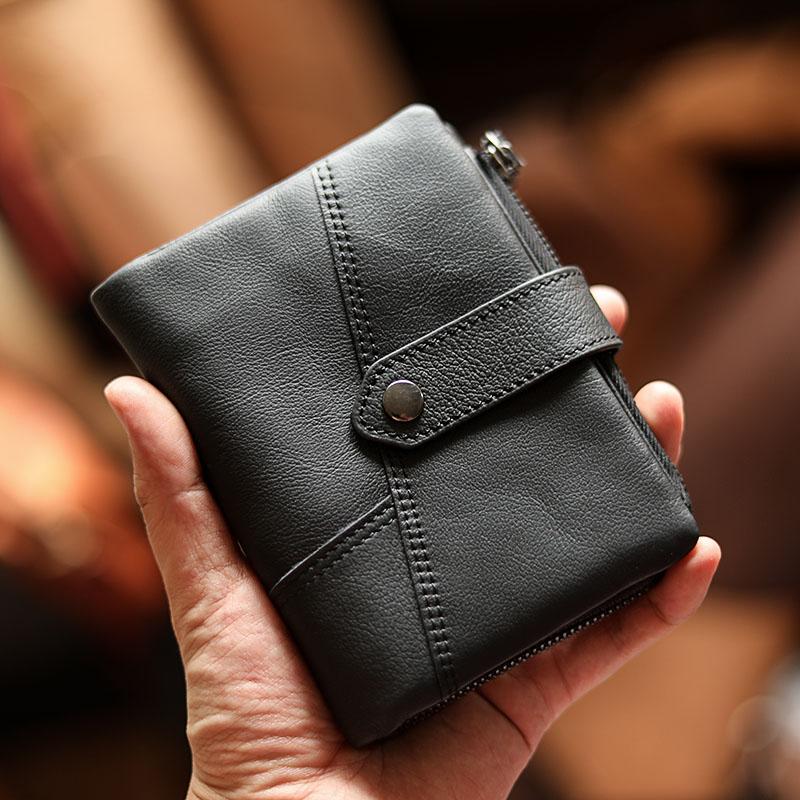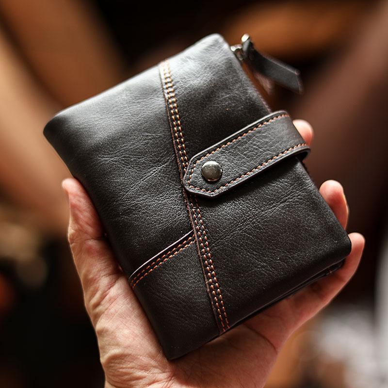 Design: Cool Brown Leather Mens billfold Wallet Bifold SMall Wallet Black Front Pocket Wallet For Men