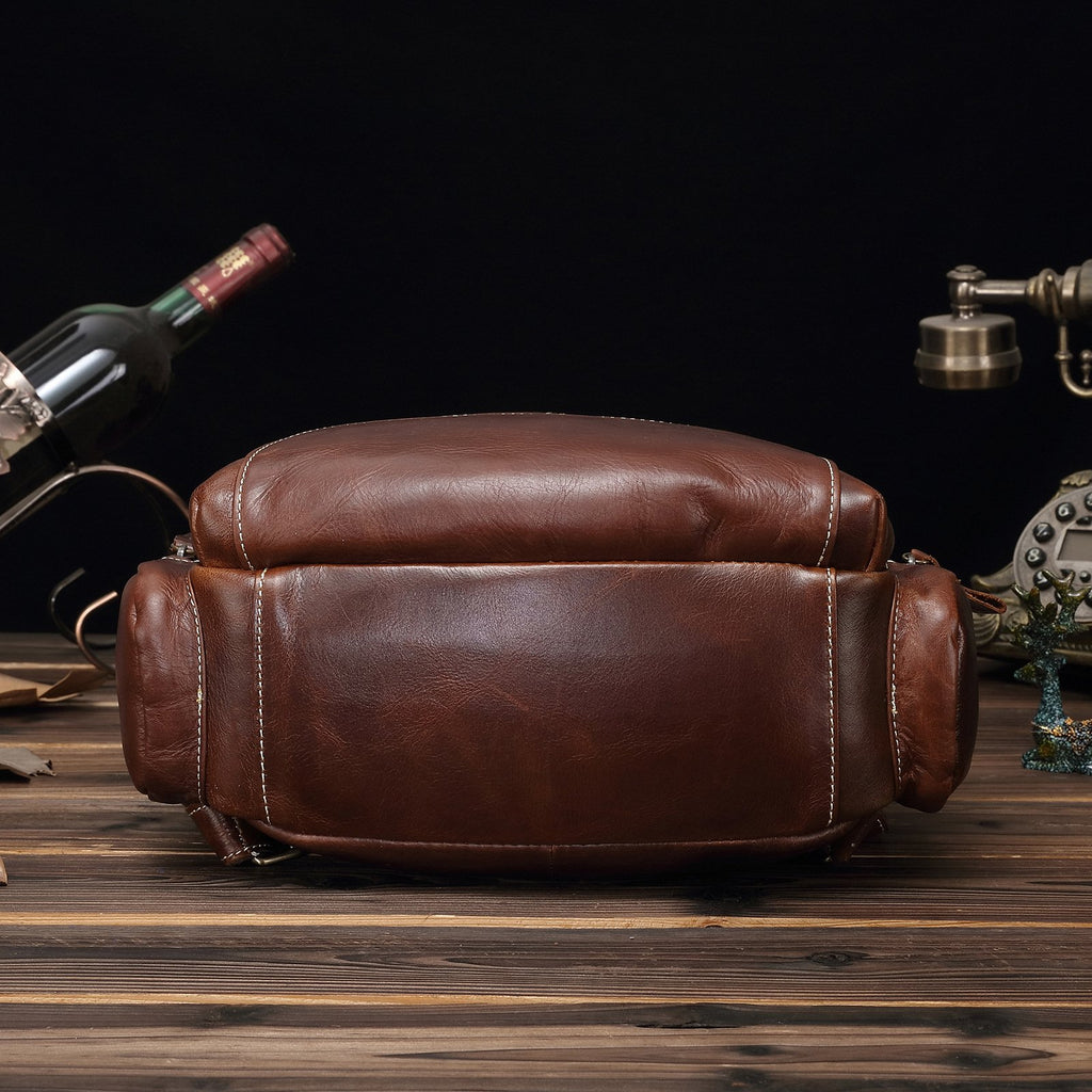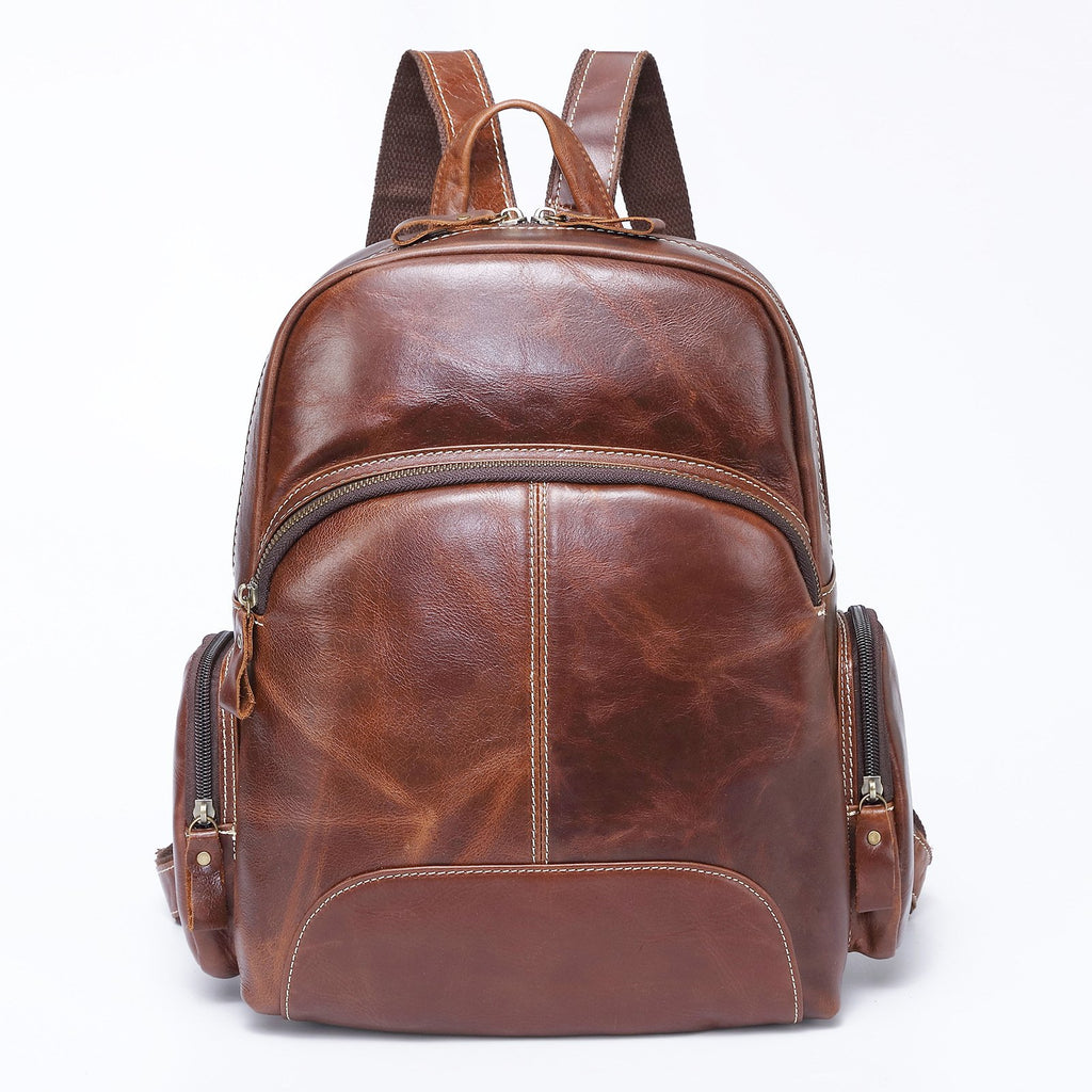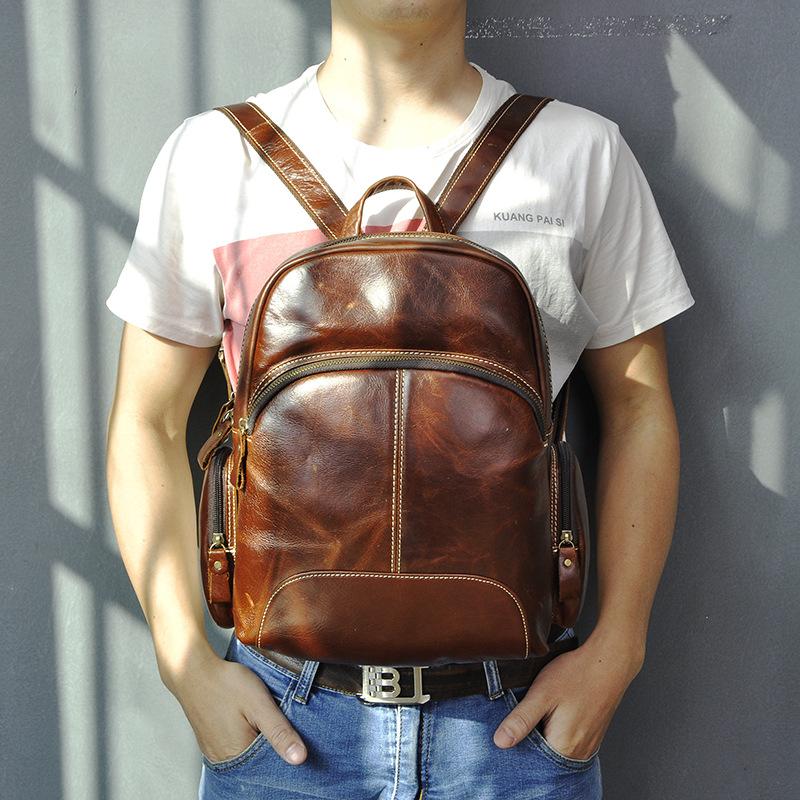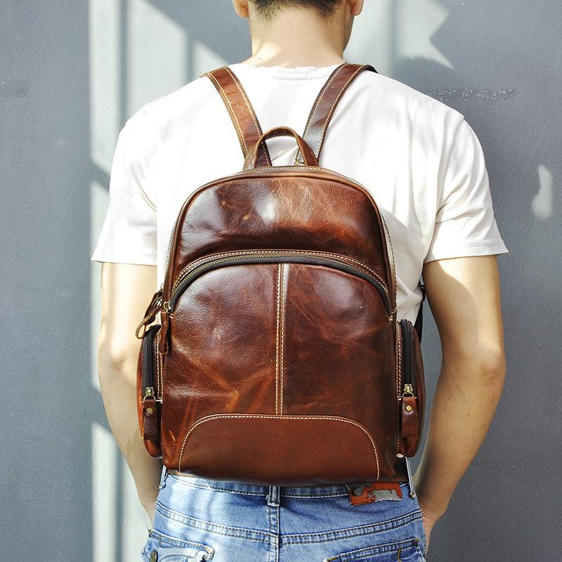 Design: Simple BROWN LEATHER MEN'S College Backpack Travel Backpack Leather Backpack For Men